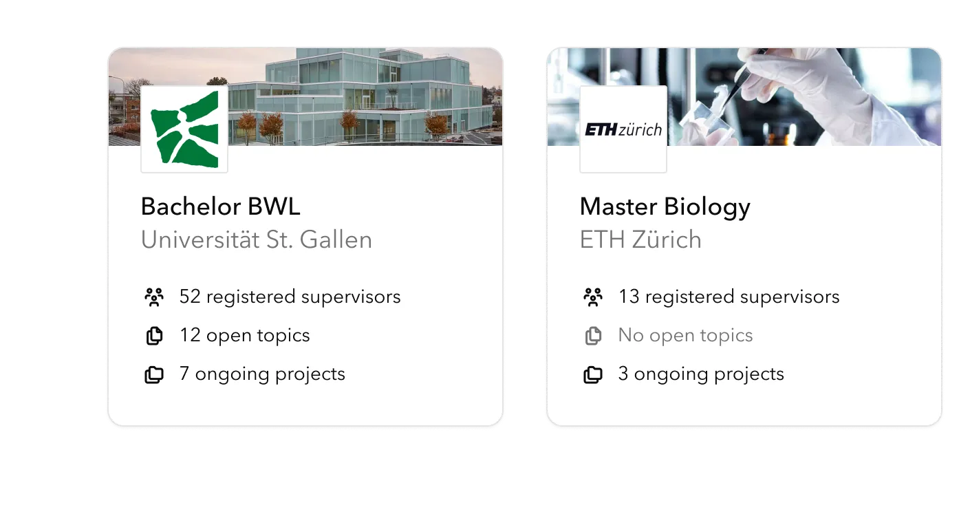 Study programs from leading Swiss universities use Studyond to connect their students with industry thesis topics and company projects.